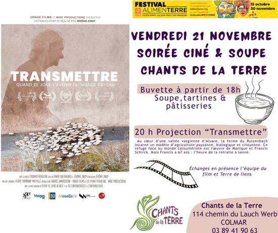 - le 21 novembre : ciné soupe dans le cadre du festival Alimenterre