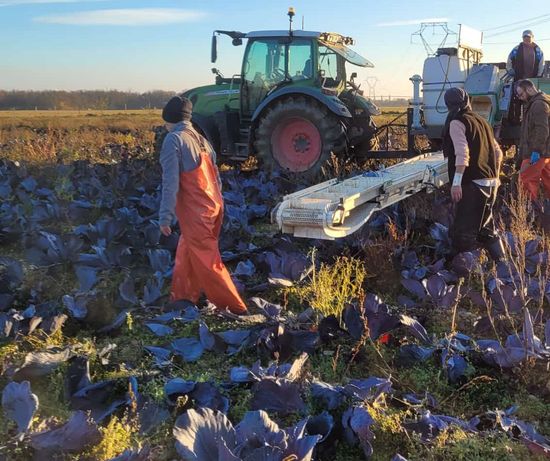 Cette semaine, les récoltes se poursuivent et dans les champs c'était le tour des choux rouges.