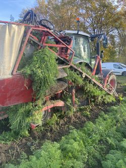 Cette semaine, Jean, Jonas, Jonathan et Guillaume ont profité du beau temps pour récolter une parcelle de carottes aux Erlen. Sous serres, la récolte des salades et aromates se poursuit avec cette semaine un petit nouveau à découvrir le cresson d'hiver.